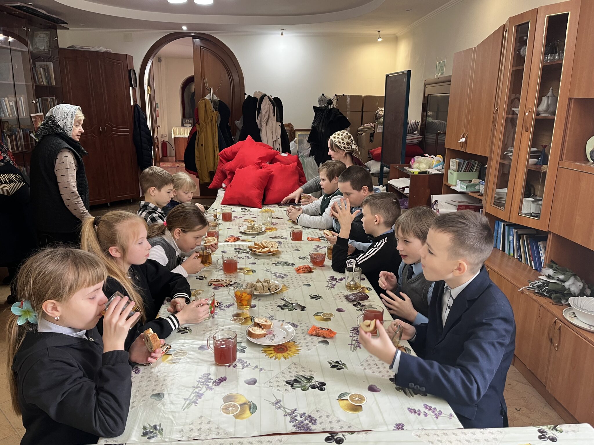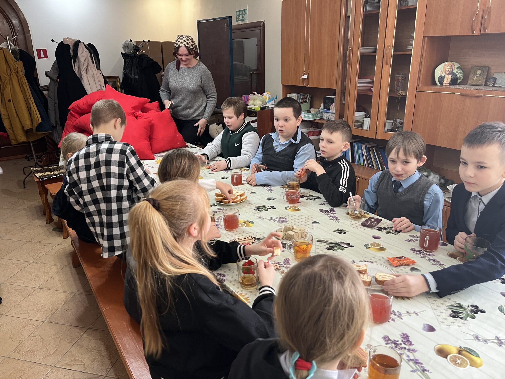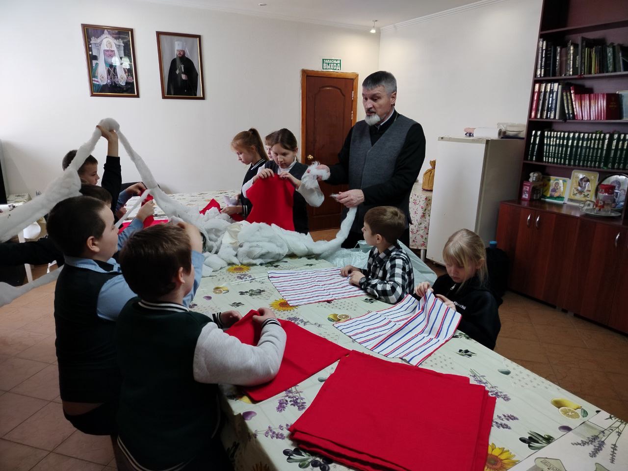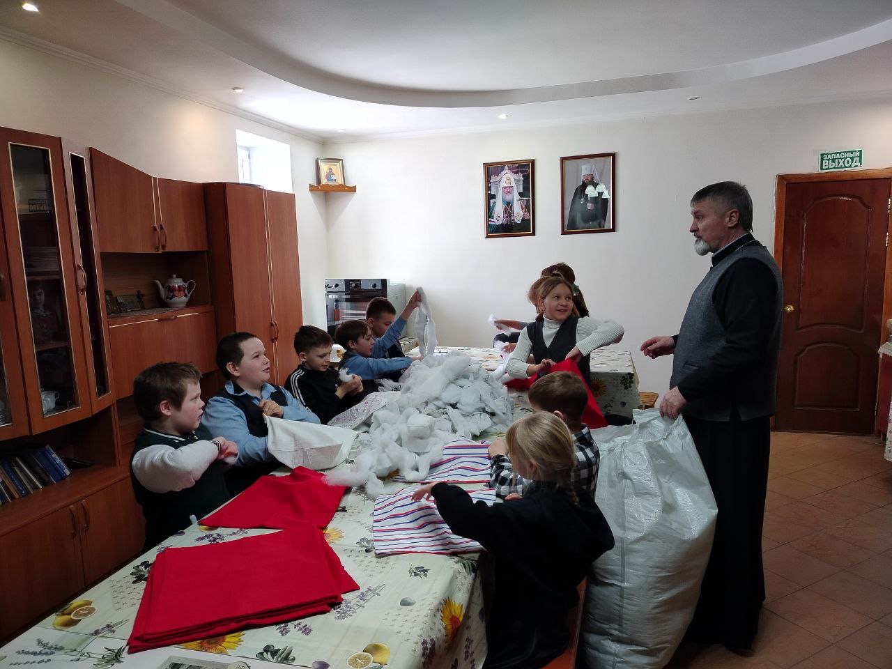 В сырный вторник помощник благочинного по молодежной работе, иерей Роман Жирнов, встретился со школьниками 4-го класса села Чаадаевка. Священник рассказал ребятам о празднике Масленица , а также о сквернословии и его последствии для человека. После беседы дети помогли набить подушки наполнителем для госпиталя в зоне СВО, а затем было чаепитие со сладостями.