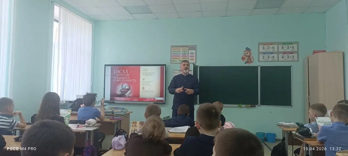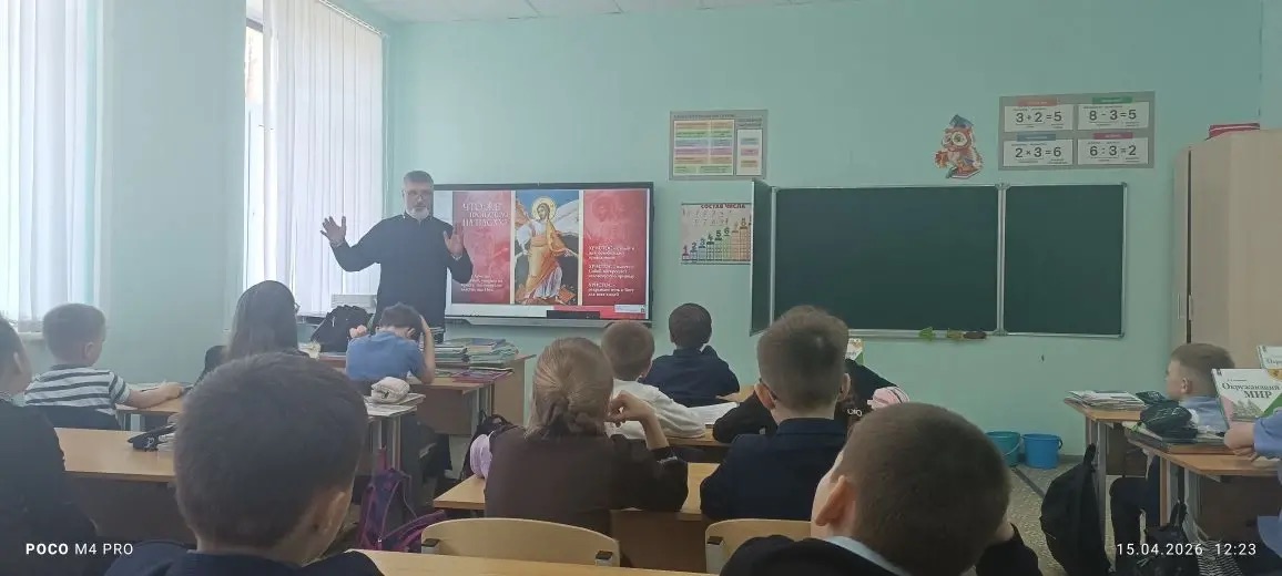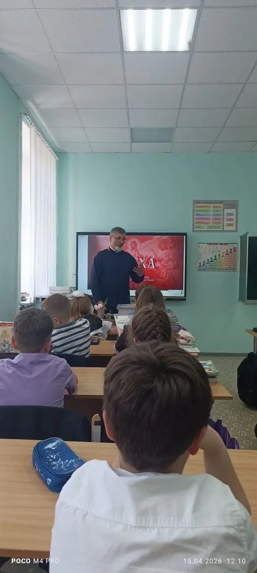 В среду Светлой седмицы помощник благочинного по миссионерской работе, иерей Роман Жирнов, посетил учащихся 3-го класса МБОУ СШ №1 г.Городище. Священник рассказал ребятам о празднике Светлого Христова Воскресения, Пасхе. Дети с удовольствием участвовали в беседе, а также задавали интересующие их вопросы.
