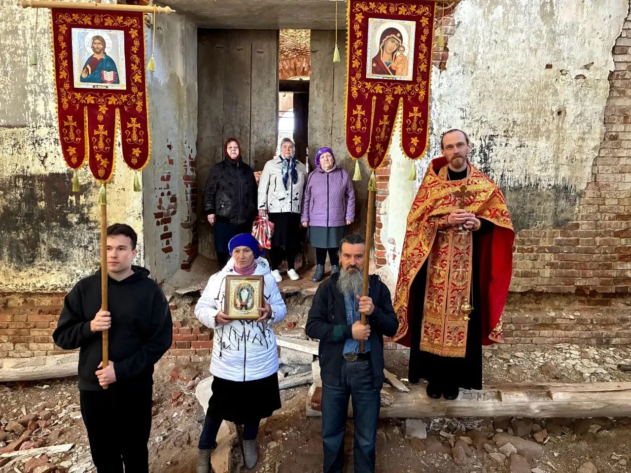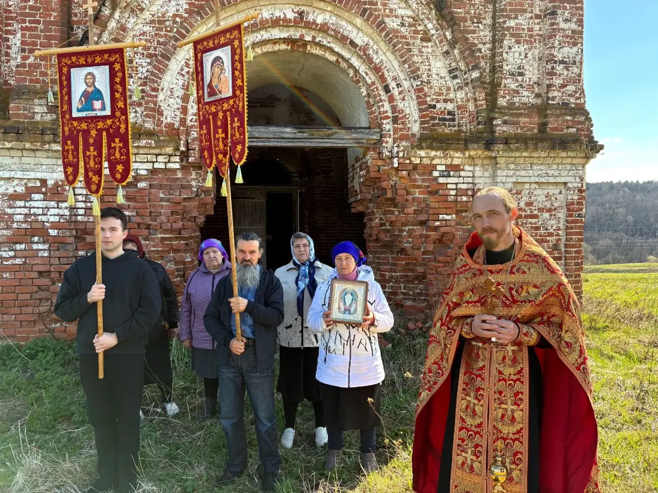 В четверг Светлой седмицы у разрушенного Никольского храма села Верхний Шкафт состоялся Пасхальный молебен, который совершил иерей Игорь Боков. По окончании богослужения священник поздравил молящихся с праздником Пасхи Христовой и обратился к ним со словами проповеди.